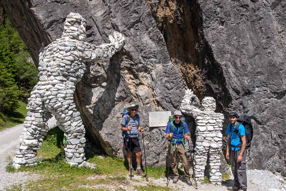 בהמשך הדרך נתקלים בדבר מעניין - סלע ענקית בצד הדרך שהתבקעה ואיימה לחסום את השביל. האוסטרים דאגו לחזק עם ברזלים את החיבור בין הסלעים (ניתן לראות בחלק העליון בתמונה מטה) והוסיפו פסלי אבנים בצורת אנשים ״המחזיקים את הסלע״ ומונעים ממנה ליפול