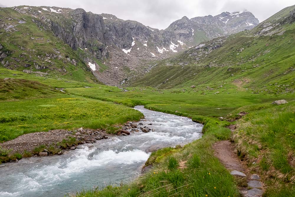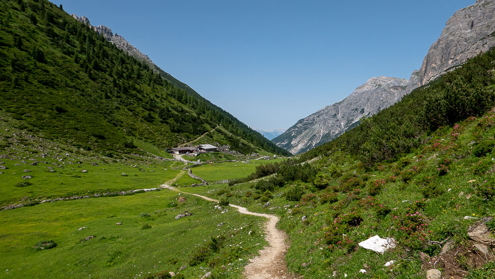 אבא מפורק לגמרי, הכאבים שלו מכתיבים קצב הליכה איטי. עדיין כמה שעות הליכה לפנינו ונראה שהיום לא נצליח להגיע יבשים לבקתה. הדרך לבקתת Sulzenau יפיפה, הולכים על רכס ירוק אשר משני צדדיו עמקים מלאים בנחלים.