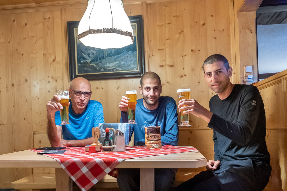 אחרי הארוחה ממשיכים לבירה וסניידרס (בנוהל) ובזמן שאנו יושבים אנו מבחינים בזוג הגרמנים שהיה איתנו בצהריים בדיוק מגיע לבקתה (כמה שעות טובות אחרינו). הם היו גמורים וסחוטים עד העצם.