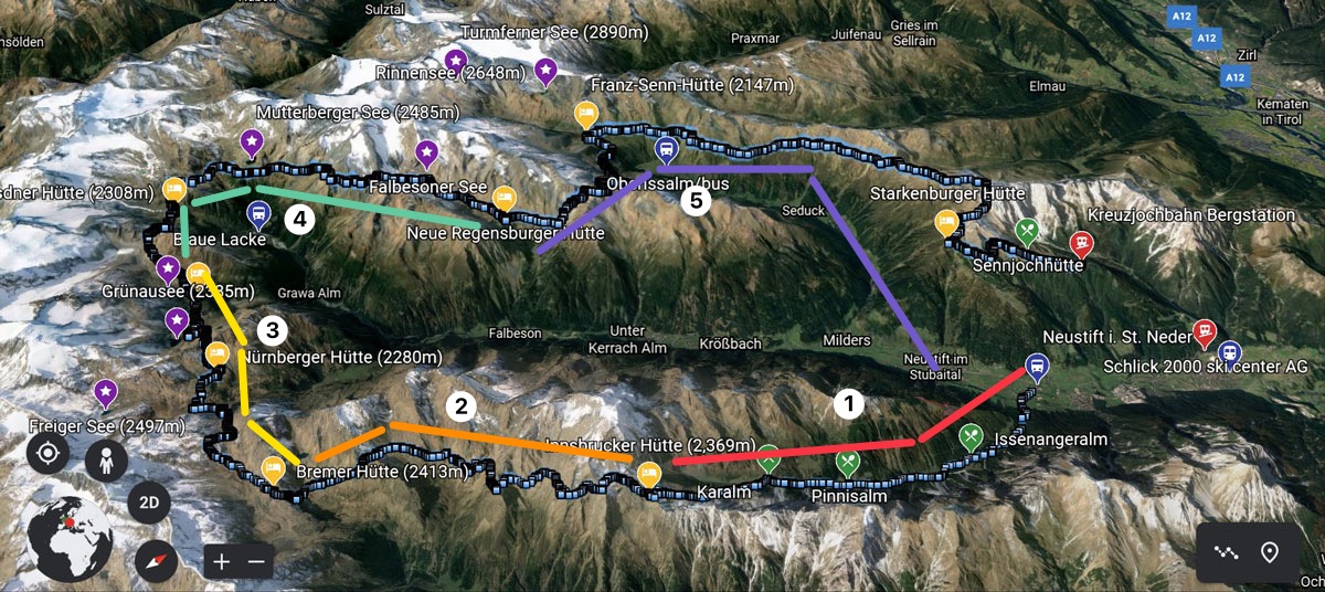 במהלך שנת 2021 מגפת הקורונה השתוללה ולא היה נראה ריאלי להוציא מסלול לפועל. לקראת סוף חודש מאי, המגפה דעכה במדינת ישראל ובחלק ממדינות אירופה והחלטנו לנסות לתכנן מסלול ספונטנית. מתוך מגוון מסלולים לא גדול שהיה על הפרק (בהתחשב במצב המגפה במדינת היעד, אורך מסלול וכו׳), החלטנו ללכת על Stubai High Trail הממוקם באזור Insbruck, Austria. את המסלול סגרנו בלחץ כחודש וחצי לפני היציאה. עקב התפוסה הגבוהה בבקתות, סגירת המסלול בשלב מאוחר כפתה עלינו לעשות פשרות בתכנון כגון איחוד מקטעים (בדיעבד הבנו שהיומיים האחרונים שתיכננו היו מטורפים). מאורעות אלו גרמו לנו לעשות שינויים תו״כ המסלול וכנראה שהייתי משנה דברים אם הייתי חוזר על המסלול אך עם כל זאת, הייתה חוויה מטורפת ובאופן מפתיע, המסלול הזה מבחינת נופים עלה על כל הציפיות! לטעמי אחד המסלולים היפים שעשיתי אי פעם.