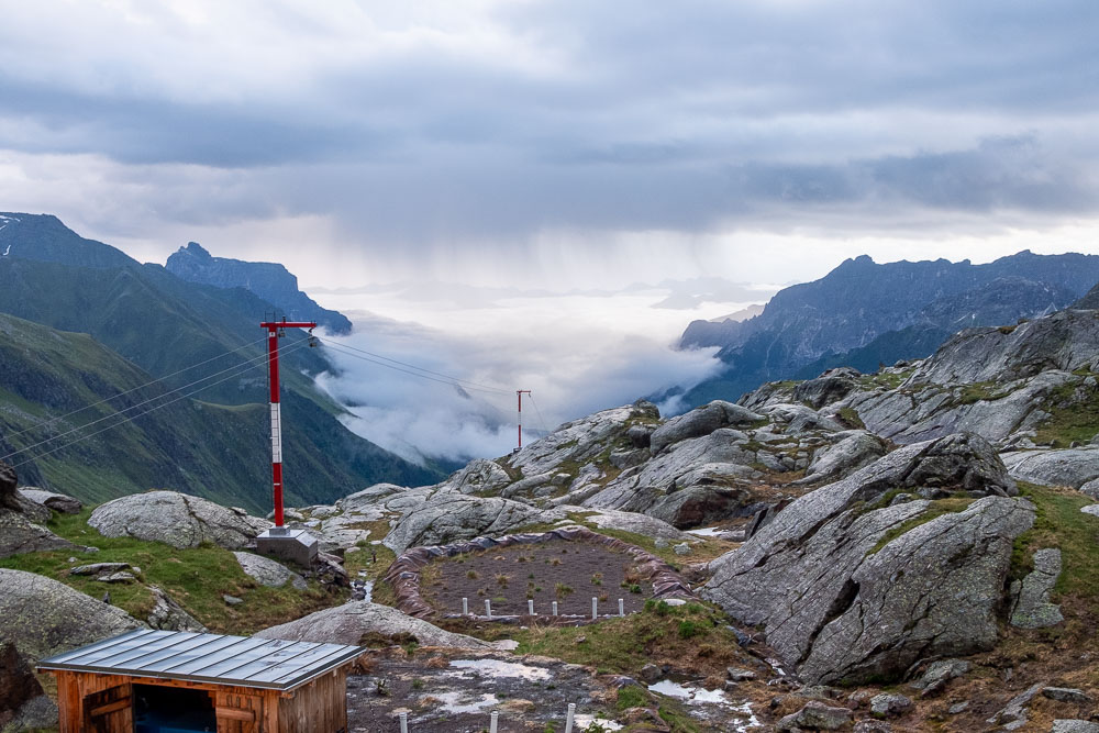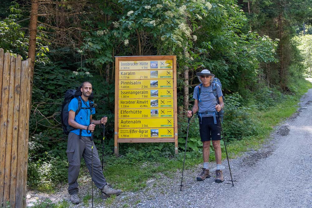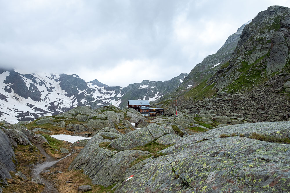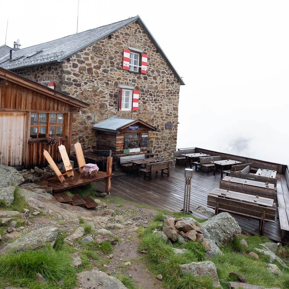ככל שהשעות עוברות, מזג האוויר הופך לחורפי יותר ויותר. עננות כבדה ברקע וטפטופים קטנים באים והולכים. באזור האלפים, לרוב גשמים מתחילים באזור אחה״צ ונראה שגם אצלנו לשם זה הולך. משתדלים לשמור על קצב הליכה טוב כדי לא להקלע למזג אוויר קשה. הכביש הופך לשביל עפר ומימיננו אנו רואים מעין בר מסעדה ומזהים בה תיירים אירופים אשר לנו איתנו ב Insbrucker Hut. הם נראו שמחים ונינוחים, השולחן שלצידו ישבו היה מלא בבירות ולא נראה שמזג האוויר הקודר ריגש אותם.