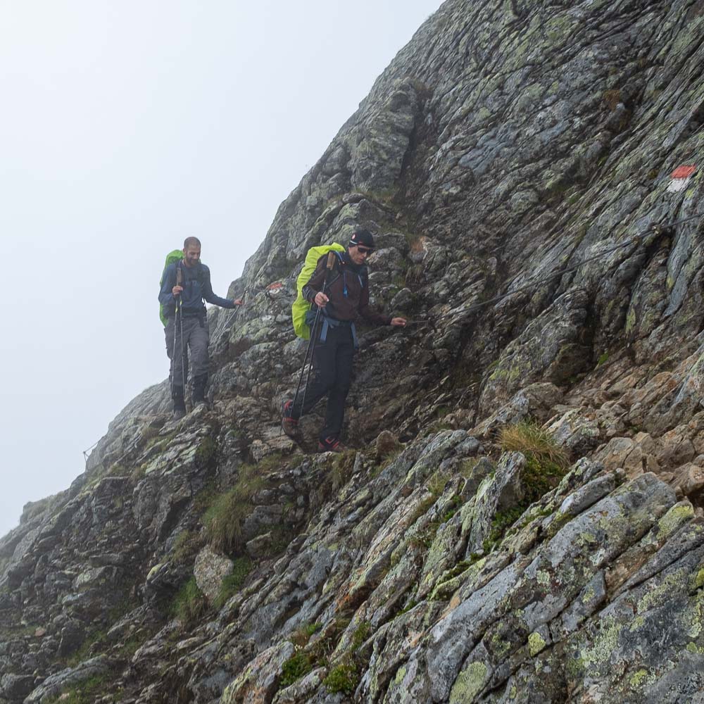 זמן קצר לאחר היציאה מהבקתה הגענו לפיצול והיתה לנו אפשרות לבחור בין שני מסלולים: ״המסלול הגבוה״ אשר ממשיך על הרכס או ״המסלול הנמוך״ אשר יורד לעמק, מתקדם בתוכו וחובר למסלול הגבוה בשלב מאוחר יותר של היום. באופן לא מודע לגמרי בחרנו במסלול הנמוך (זה מה שהמטייל שהקליט את המסלול שטענתי ב GPS עשה גם ופשוט המשכנו בעקבותיו). הבחירה במסלול ״הנמוך״ הפכה את היום לקשה וארוך משמעותית לעומת התכנון המקורי אך מבחינה בטיחותית זה היה הדבר הנכון לעשות במזג האוויר ששרר באותו היום. בדרך פגשנו לא מעט מטיילים שבחרו בתוואי זה בדיוק מאותה סיבה.