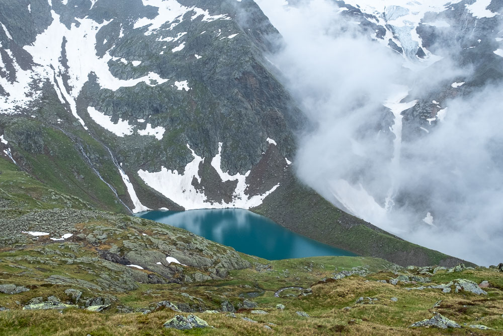 ברגע שחוצים את המעבר, נחשפים לנו שני אגמים יפיפיים. לצערנו בשלב זה כבר יורד גשם די משמעותי ולא מסתדר לעצור לקפה או להפוגה למרגלות האגם.