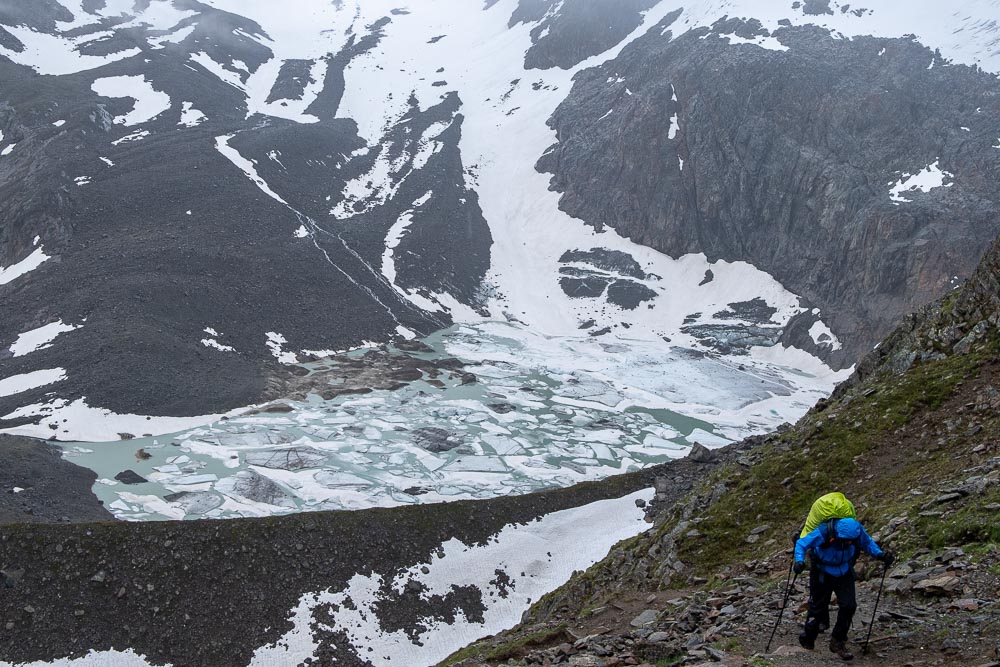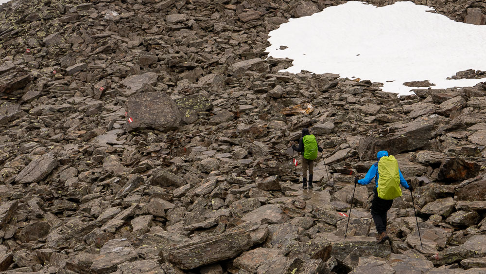קצב ההתקדמות מאוד איטי. לפי התכנון אנו חייבים לגמוע יומיים הליכה של המסלול הרשמי בשביל להגיע למקום הלינה הבא ולכן יודעים שצריך להתמיד בהליכה ואין זמן להתמהמה. לאחר כמה מאות מטרים עוצרים, מסתכלים לאחור ושוב, מוקסמים מהנוף המרהיב של אזור הבקתה.