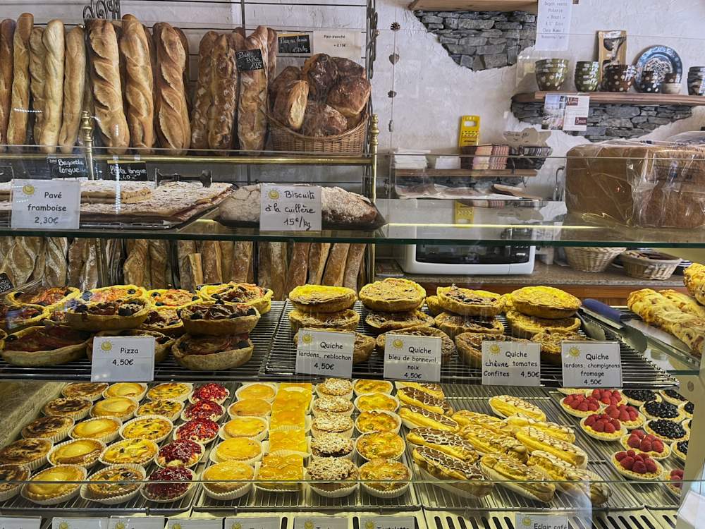 לבקתה הייתה מרפסת ענקית ועגולה, תפסנו בה שולחן והתענגנו על ה-Picnic Pack שהזמנו מ-Chalet Le Montana שכלל באגטים עם גבינות, מעין תרכיז תפוחים שאכלנו בהפסקה לפני וביצה קשה.