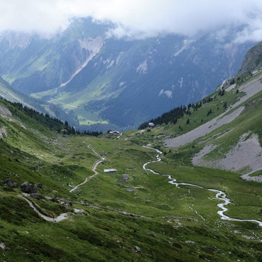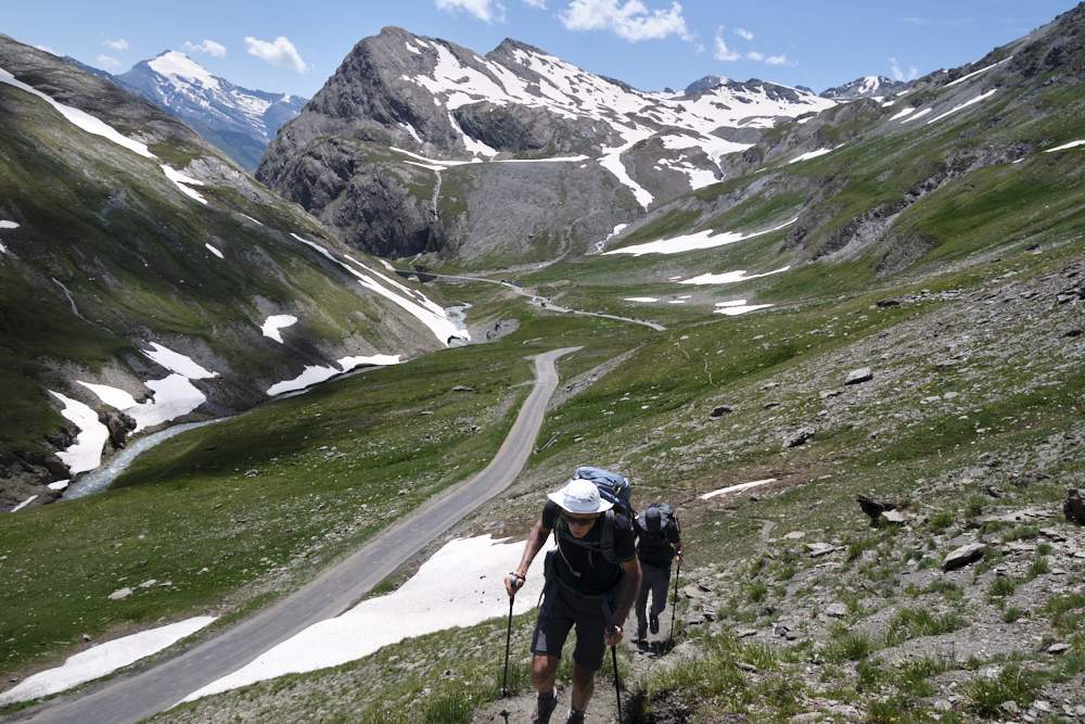 היינו עייפים, היו מאחרינו מעל ל-25 ק״מ עם טיפוס מצטבר של כ-1,200 מ׳ אך ידענו שיש לפנינו עוד הליכה. חצינו את הנהר העובר במרכז העמק על גשר בטון והתחלנו לטפס בעליית אספלט לכיוון בקתת Plan du Lac. בשלב הזה כבר ממש הרגשנו את הסוף. השמש הייתה חזקה וחיפשנו מקום מוצל לנוח בו.