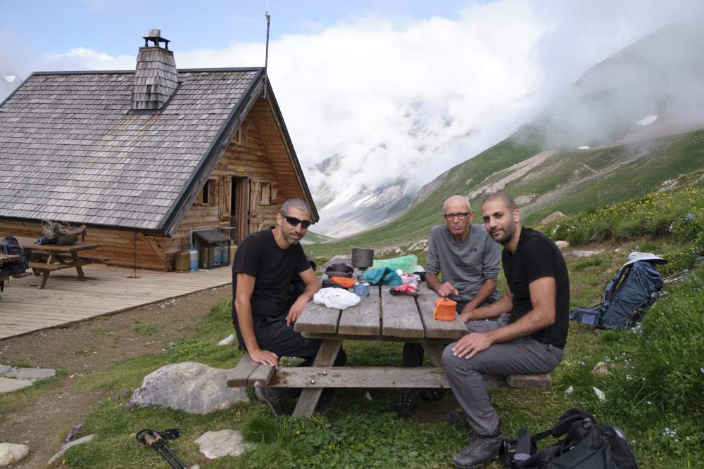הגענו לבקתה קטנה בשם Refuge du Cuchet שבחלקה הקדמי היה ספסל מוצל אך לצערינו הוא נתפס ע״י מטיילים אחרים. לא מצאנו בשטח הבקתה מקום אחר לנוח בו והחלטנו להמשיך אך כמה עשרות מטרים לאחר מכן, מצאנו פיסת עשב מזמינה עם נוף על כל העמק.