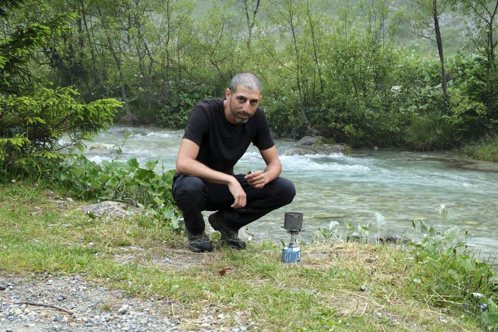 במהלך העליה אבא החליט שהוא רוצה לפרק את השרוולים של המכנסיים ועצר באיזשהו שולחן ליד אוהל של מטייל סולו שהתעורר מהרעש שעשינו.